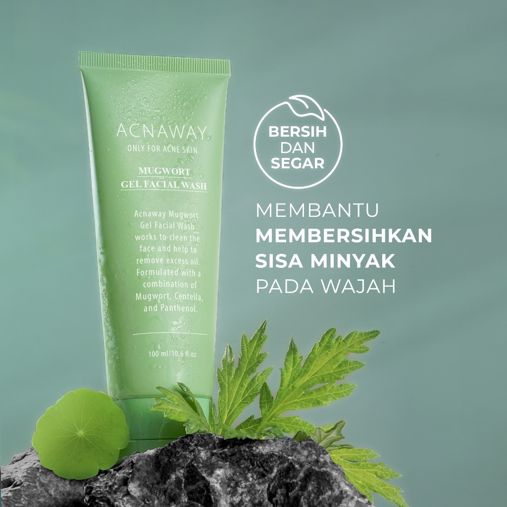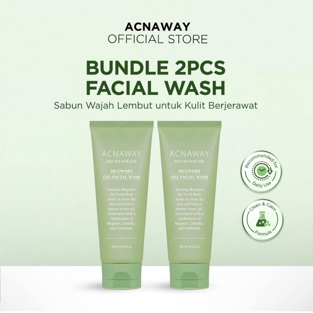 ACNAWAY Bundle 2 Pcs Mugwort Gel Face Wash – Pembersih Wajah Lembut untuk Acne Prone Skin with Mugwort + Centella + Pant
