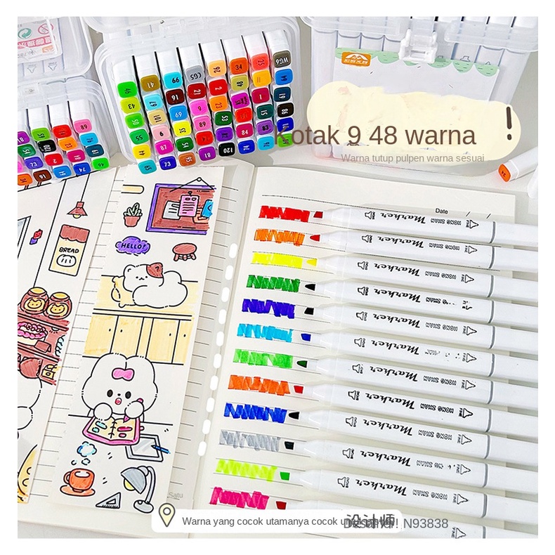 Spidol Berbasis Minyak Ujung Ganda Set Lengkap Spidol Anak 12-48 Warna Pensil Cat Air Set Warna