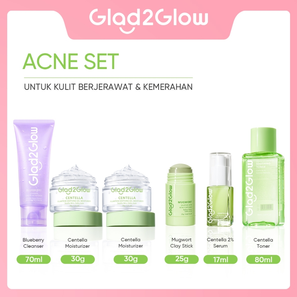 SPECIAL BUNDLE 6 in1 Glad2Glow 6pcs Paket Skincare Moisturizer Serum Clay Mask Face Wash Toner-ACNE KIT GLOWING KIT Dar