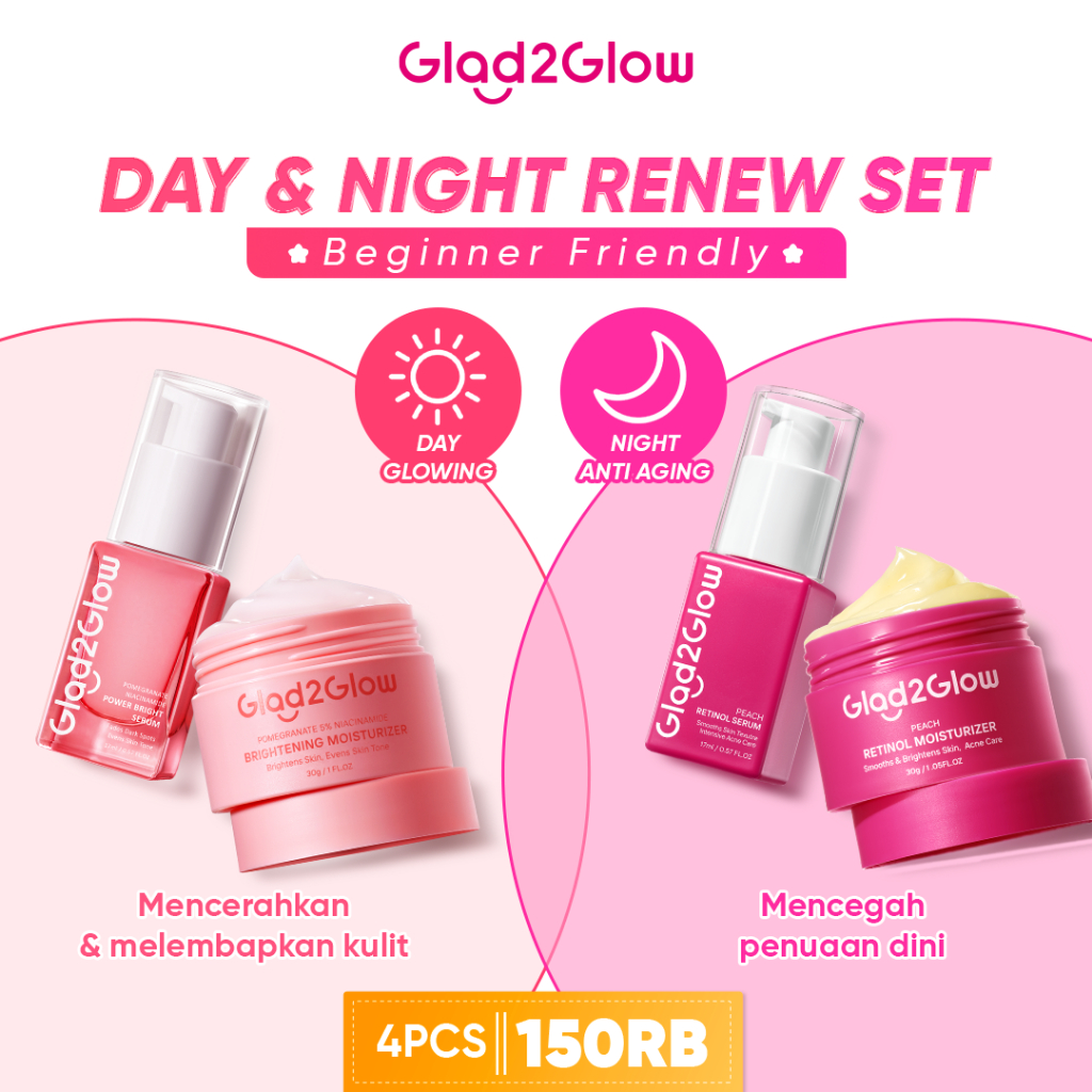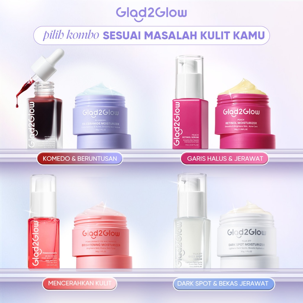 Paket Glad2Glow 2pcs Skincare Set Serum + Moisturizer Glad2Glow Kits Brightening Set Glowing Set Barrier Set Dark Spot S
