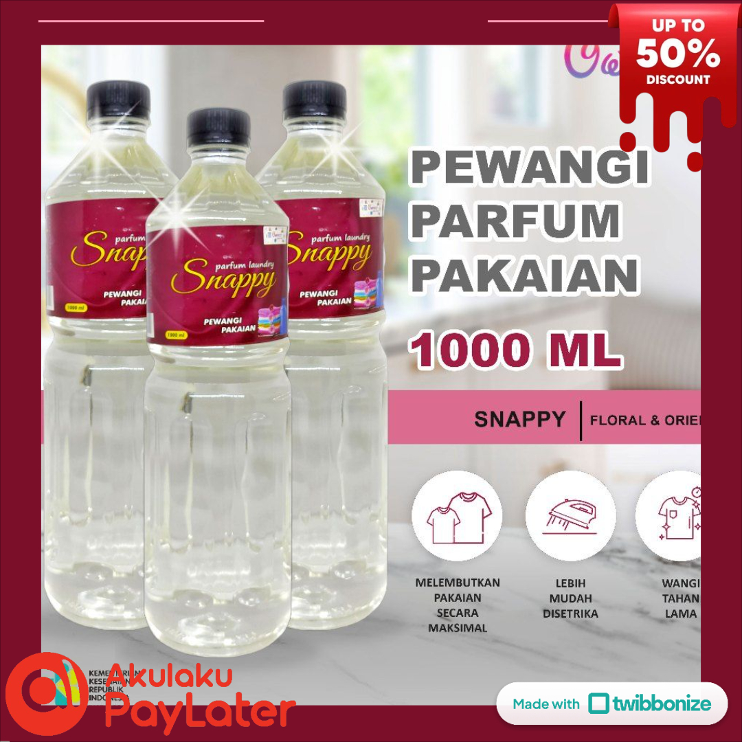 [Best Seller] Parfum Laundry Snappy/Pewangi Pakaian Laundry/Parfum Pewangi Pakaian Laundry 1 Liter - Izin Kemenkes