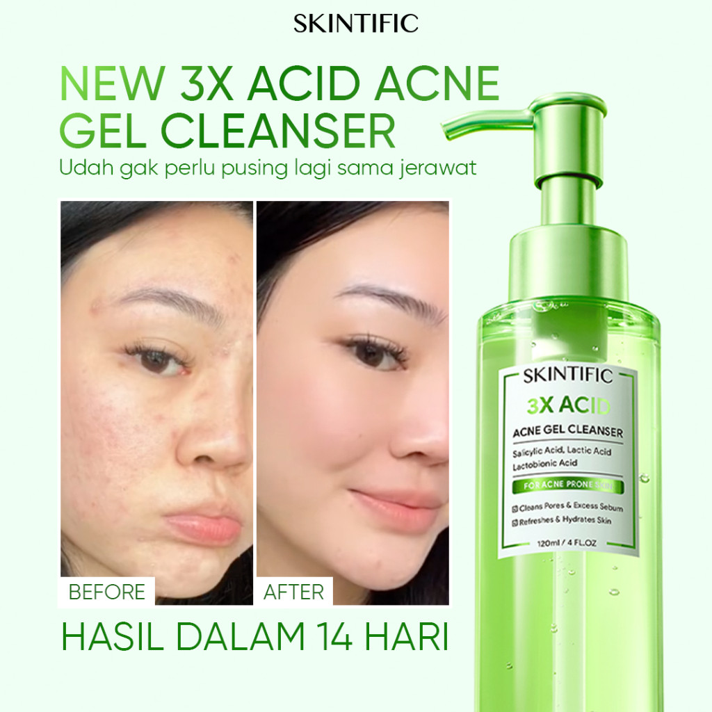 [SKINTIFIC AUTHORIZED] SKINTIFIC - Green Series Anti Acne Set | Merawat Jerawat 3x Acid Cleanser 2% Salicylic Acid Serum