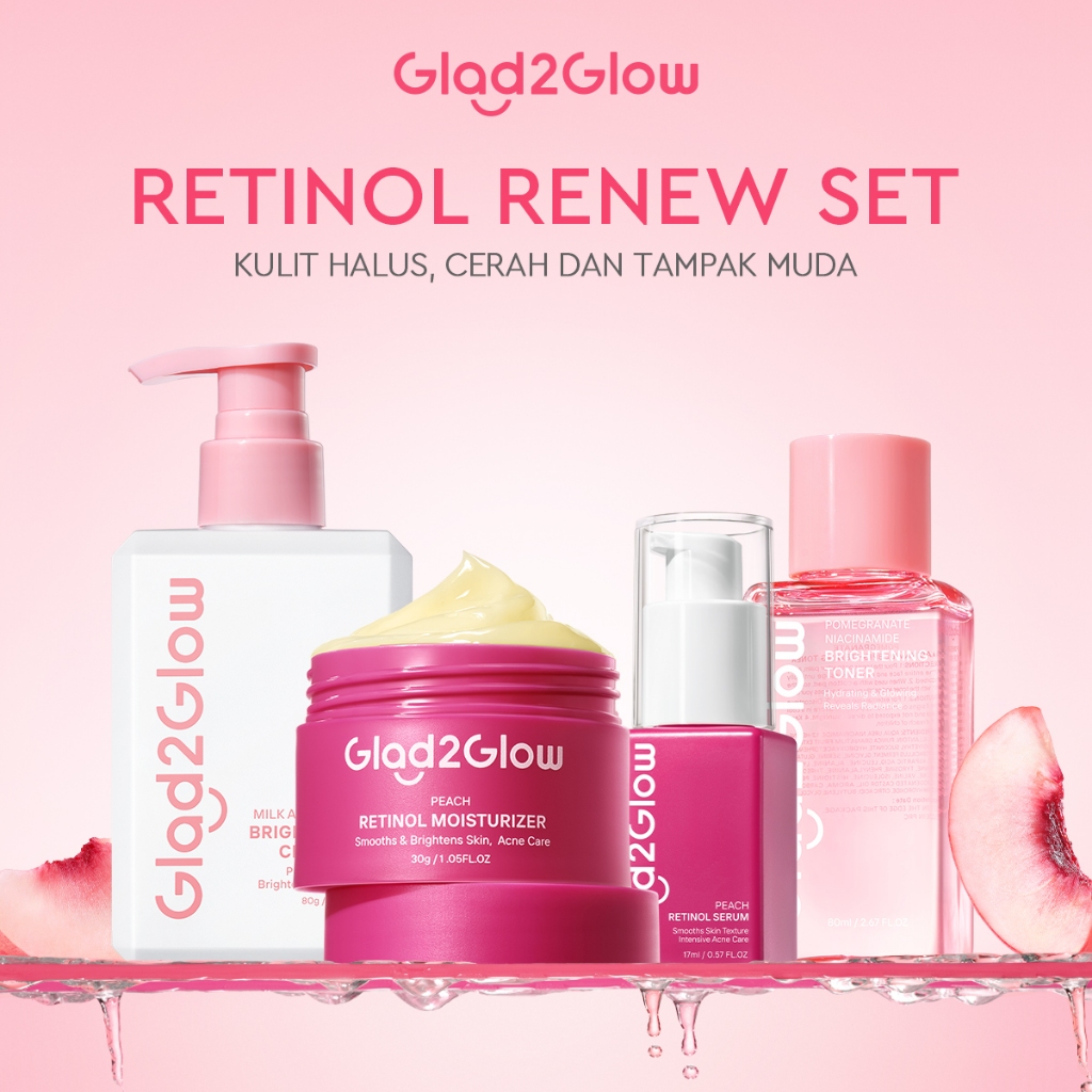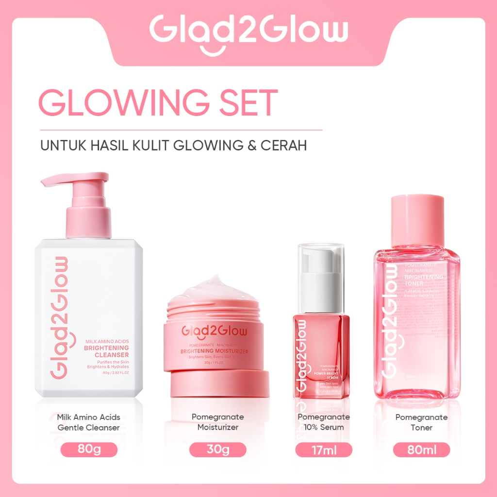 Glad2Glow 4pcs Glowing Paket Skincare All in1 -Moisturizer Toner Serum Milk Cleanser Acne Care /Glowing / Anti Dark Spot