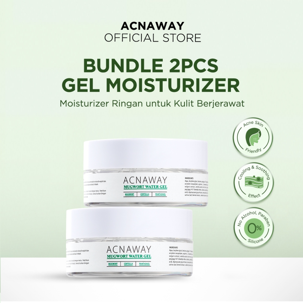 ACNAWAY Bundle 2 Pcs Mugwort Water Gel – Pelembap Wajah Ringan untuk Kulit Sensitif & Berjerawat with Mugwort + Centella