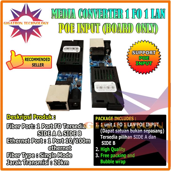 Media Converter 1 Port FO 1 Port LAN POE Mini HTB PCBA 10/100 / 1 FO 1 LAN POE / Fiber Switch 1 SC 1 RJ45 1SC1E PCBA PO
