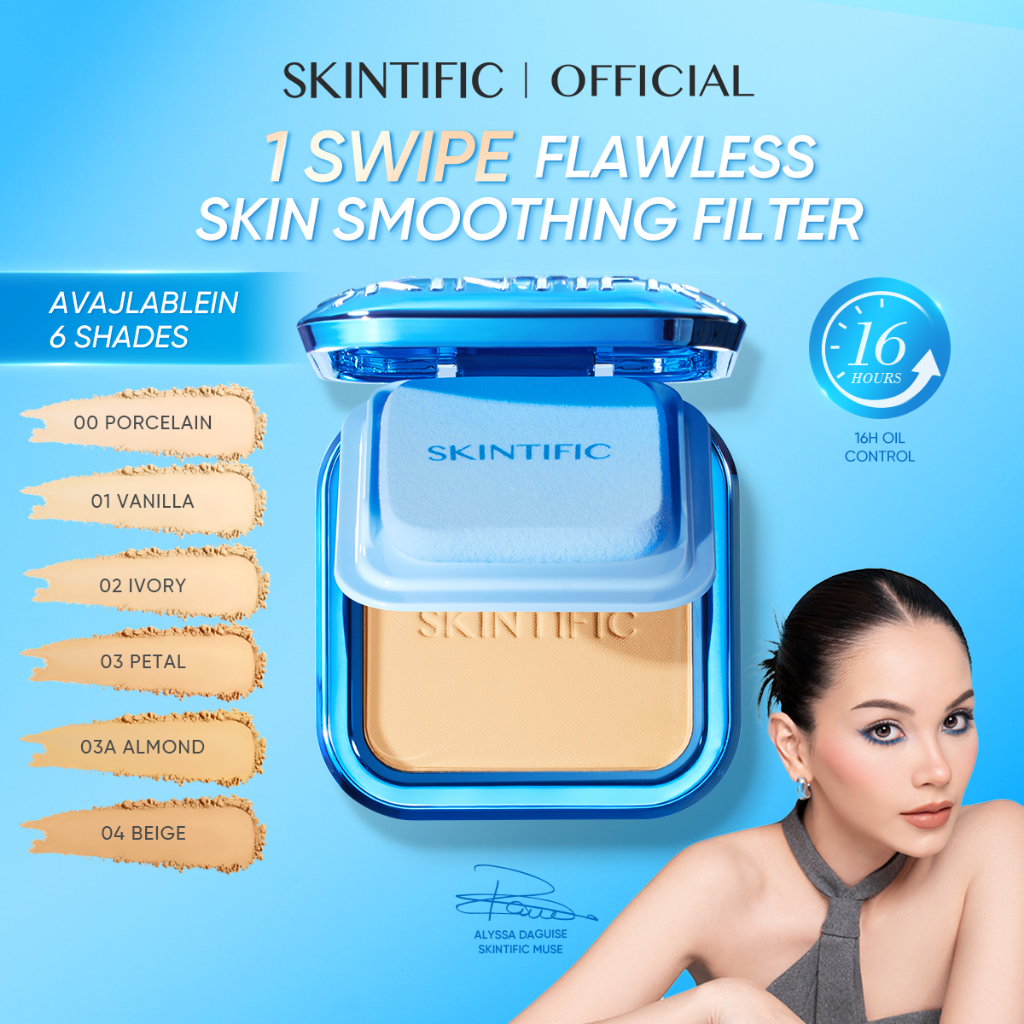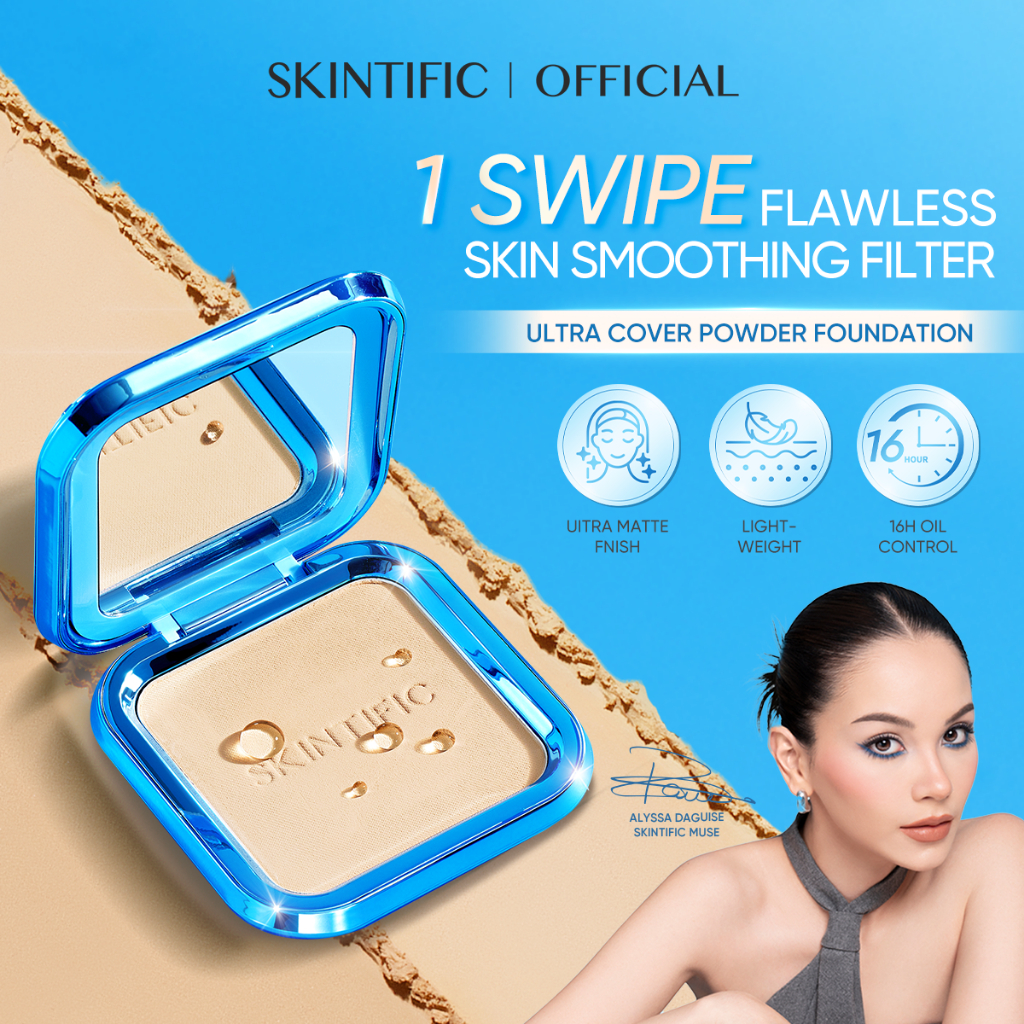 [Official Store]SKINTIFIC Official Store- Ultra Cover Powder Foundation 9g | Oil Control Two Way Cake Pressed Powder Mat