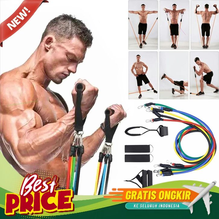 [Mall] New Power Resistance Band 11 Pcs Set Tali Tarik Karet Gym Yoga Fitness Alat Olahraga Chest Shoulder