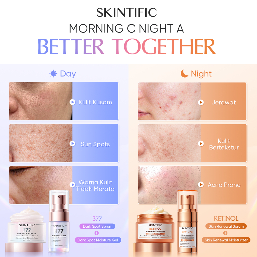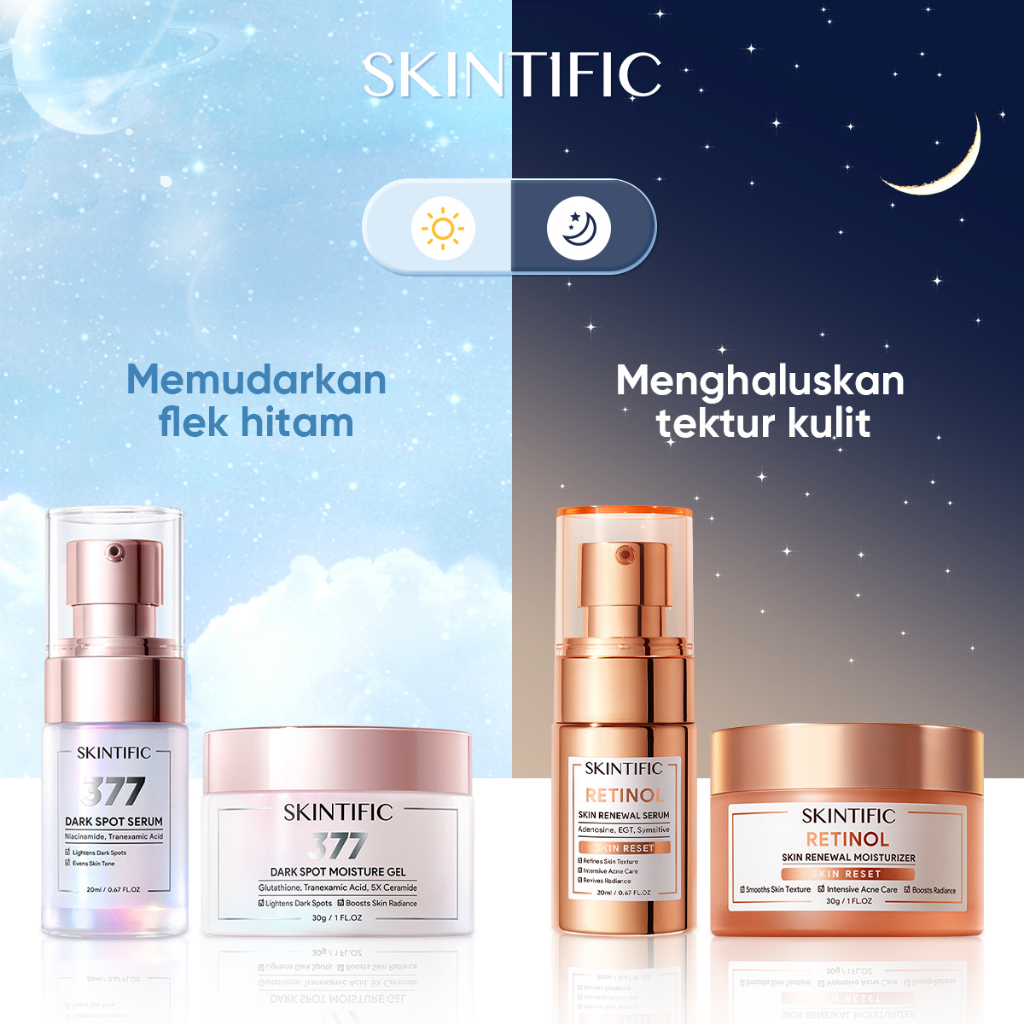 [SKINTIFIC Resmi] - 4PCS Day & Night Renew Skincare Set | 377 Dark Spot + Retinol Serum Moisturizer