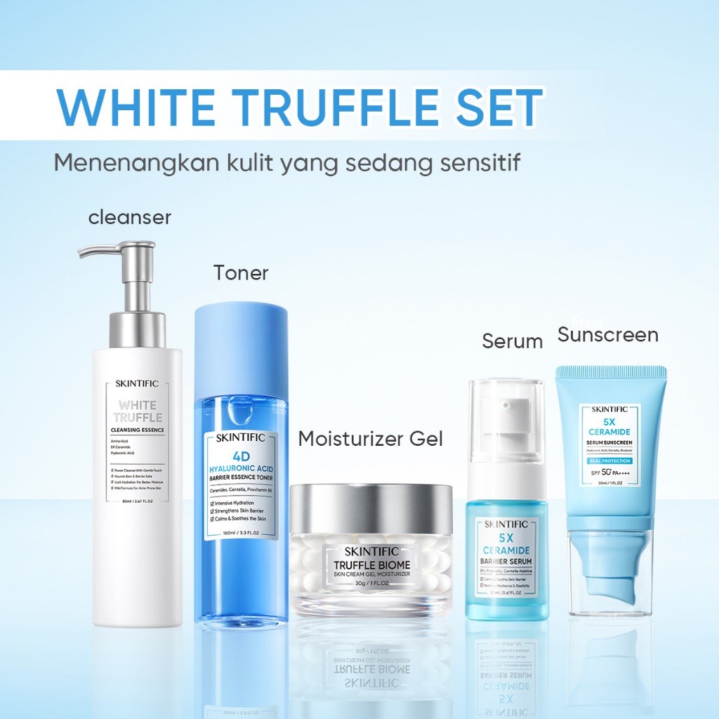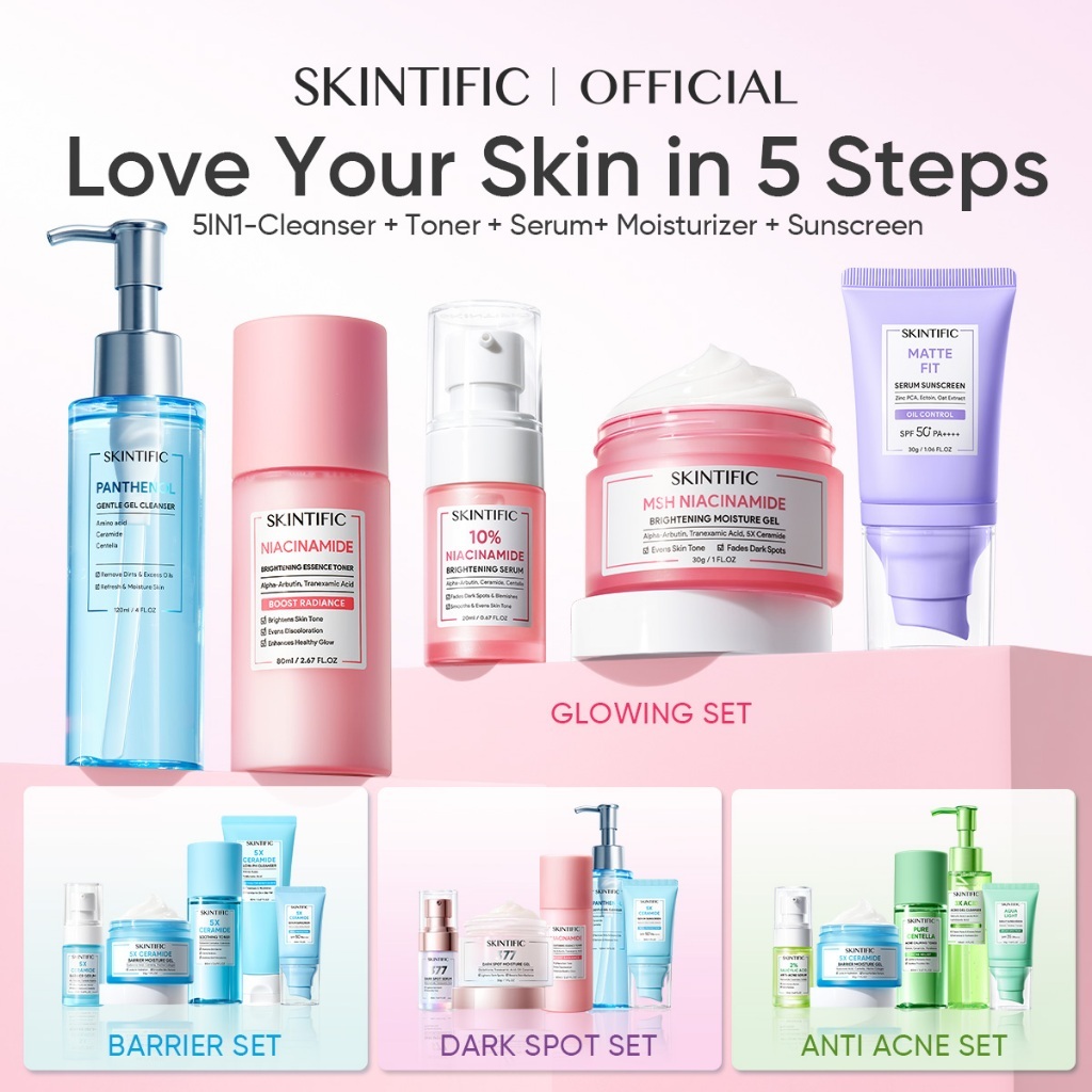 [SKINTIFIC CERTIFIED] 5pcs Paket Skincare Set | Serum Moisturizer Gel Toner Sunscreen Cleanser Mousse Facial Wash Day Ni