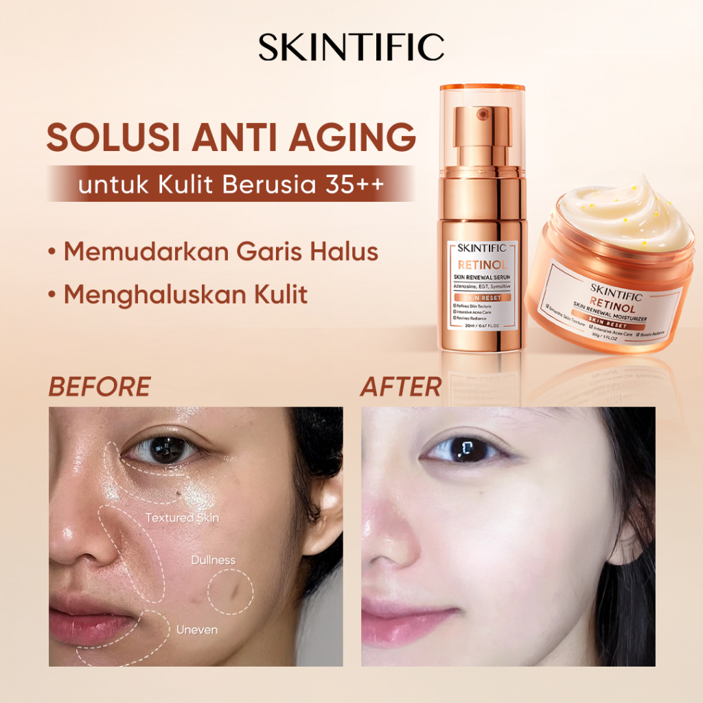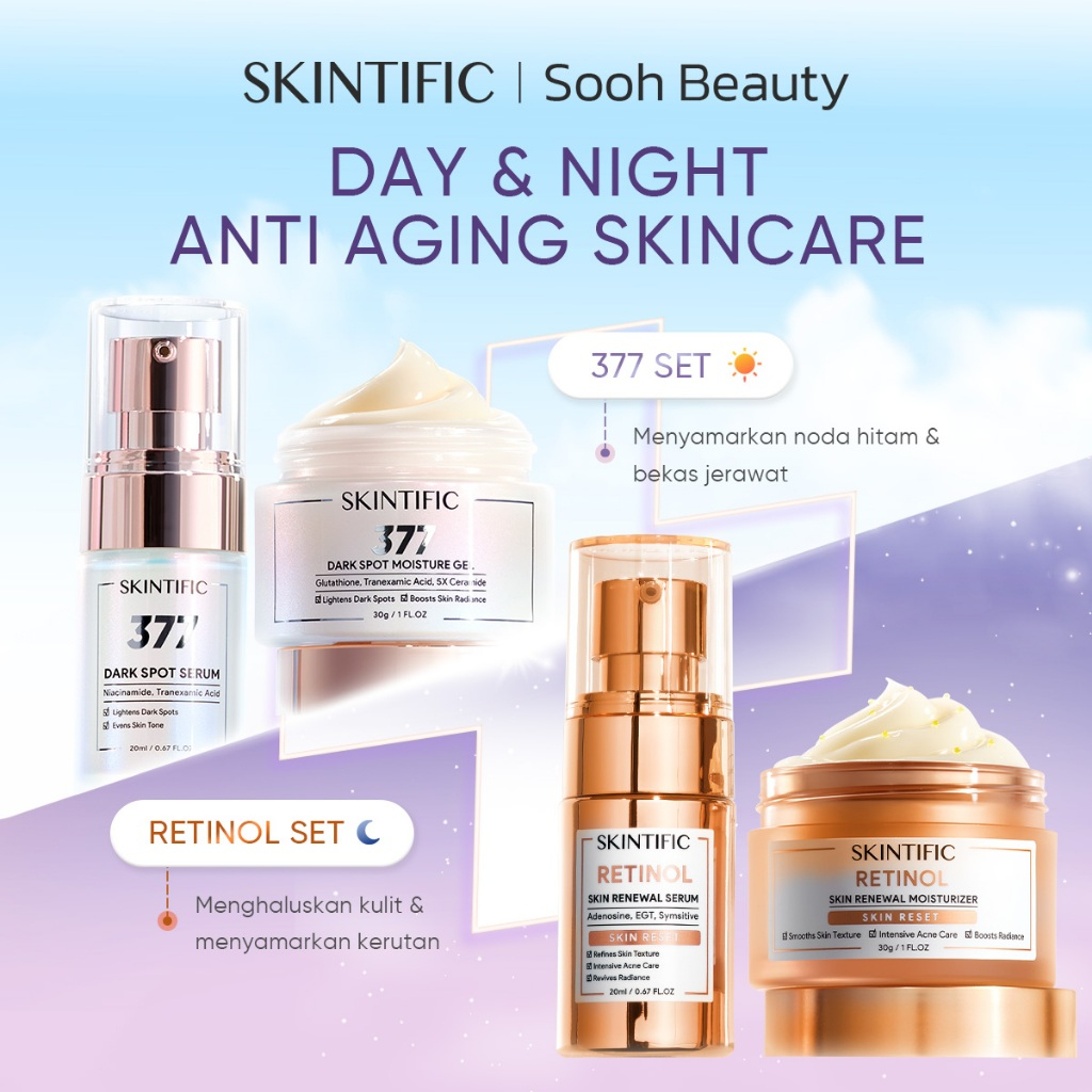 SKINTIFIC - 4pcs Paket Day&Night Skincare Set - Symwhite 377 Dark Spot Serum&Day Cream + Retinol Skin Renewal Serum & Ni