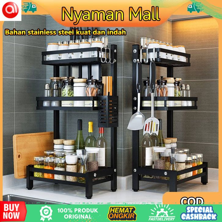 Rak Bumbu Dapur Stainless Steel Rak Penyimpanan Dapur Rak Bumbu Rak Dapur Stainless 3 Susun 2 Susun 3 Tingkat
