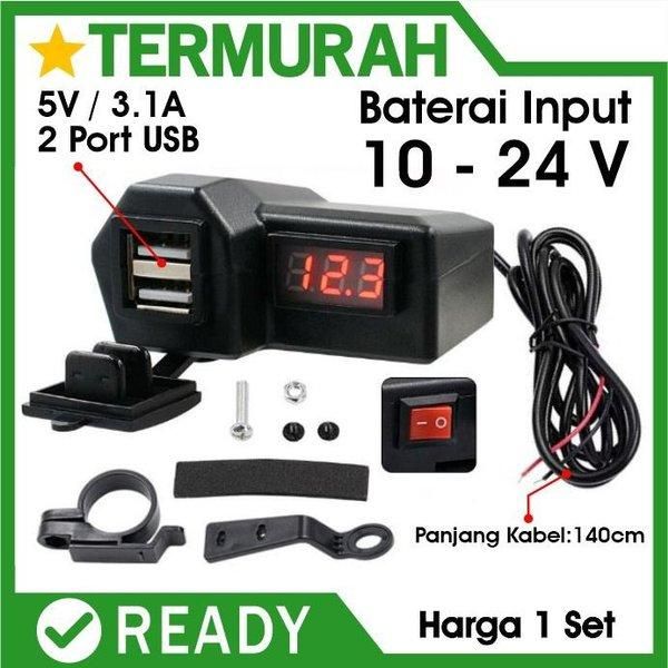 USB Charger STANG MOTOR Digital Voltmeter Cas HP Motor 3.1A dual jepit
