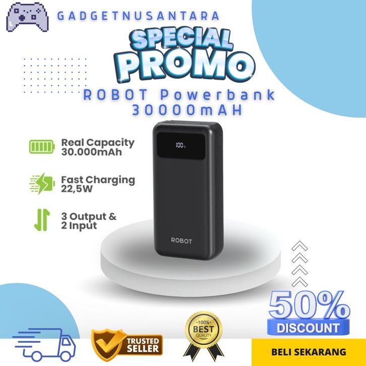 Powerbank Powerbank Robot Original Powerbank Robot RT 32 30000mAH Fast Charging QC 3.0 22.5W Port Usb Type C LED Murah