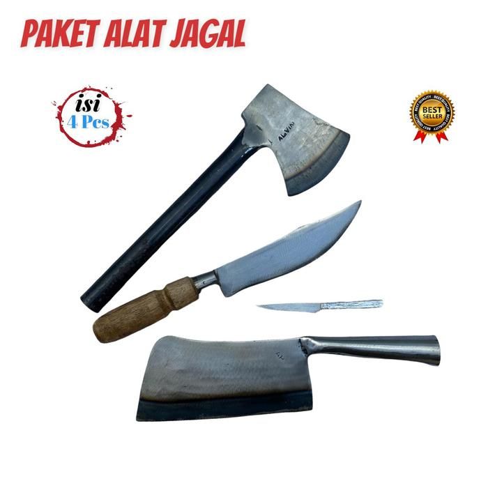 PAKET JAGAL - Kapak Genggam Pisau Daging Pisau Sembelih Dan Pisau Usus