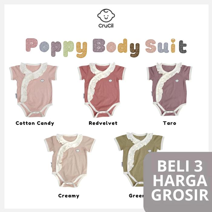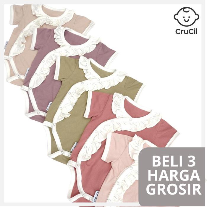Promo CruCil Poppy Body Suit Short Sleeve Bayi - Jumper Anak Perempuan Newborn - Ruffle- Bahan Katun Cotton Promo