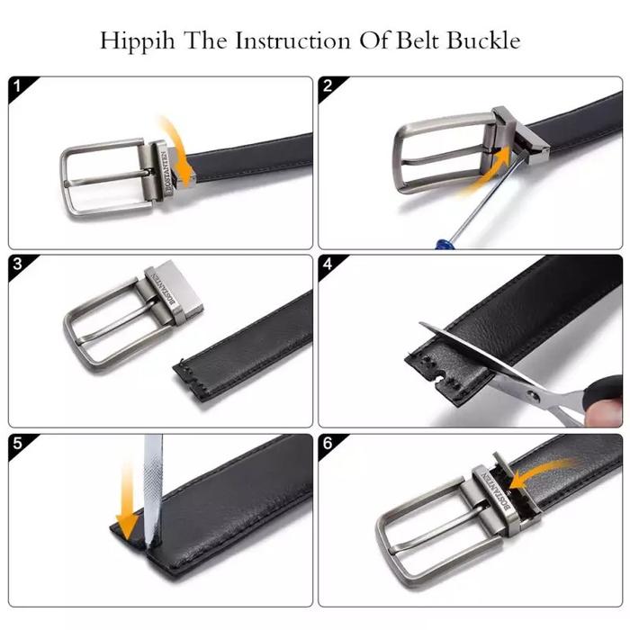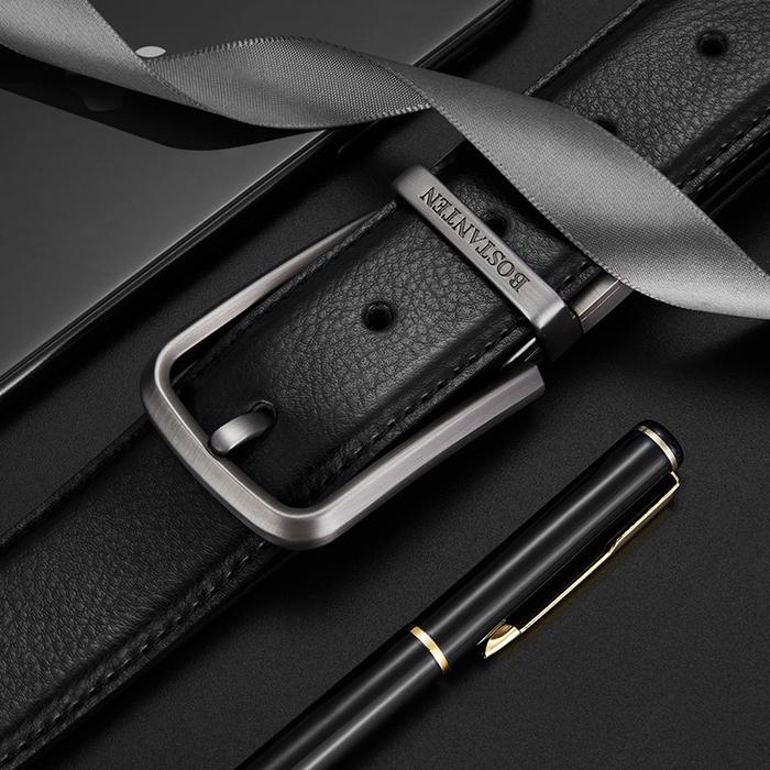 BOSTANTEN Sabuk Ikat Pinggang Pria Warna Hitam Bahan Kulit Sapi Asli