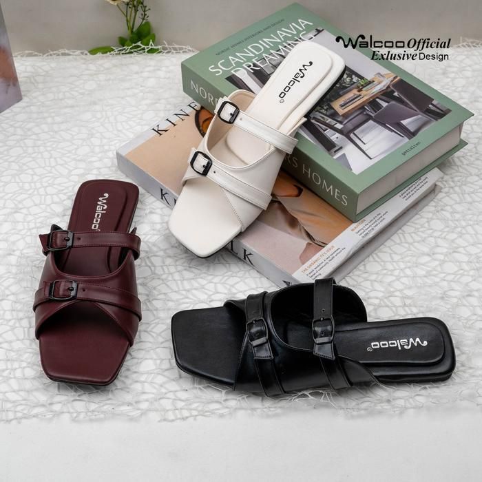 Sandal Teplek Wanita Branded Terbaru Walcoo Isyana - Sandal Teplek Wanita dengan Tali Gesper - Hitam 37