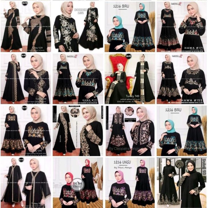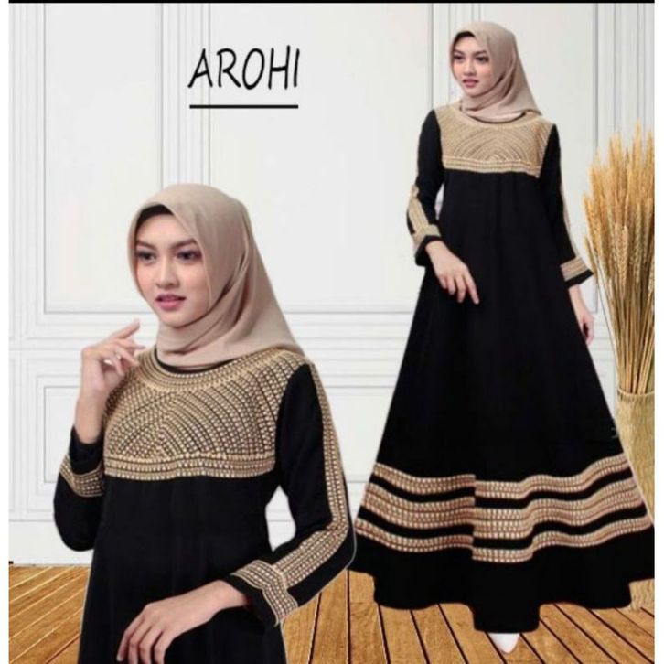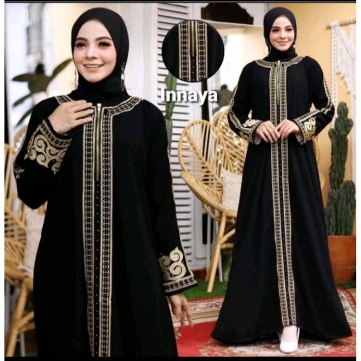 Abaya Turkey Hitam Jetblack Bordir Arohi Mewah Gamis Arab Zoya