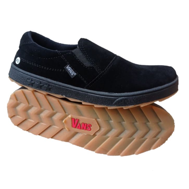 TERMURAH Sepatu Pria Casual Slip On Hitam Polos Slop Kasual Tanpa Tali Full Black Gum Buat Gaya dan Kerja obemnc