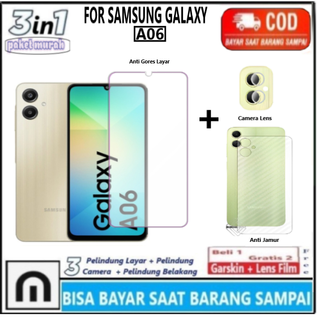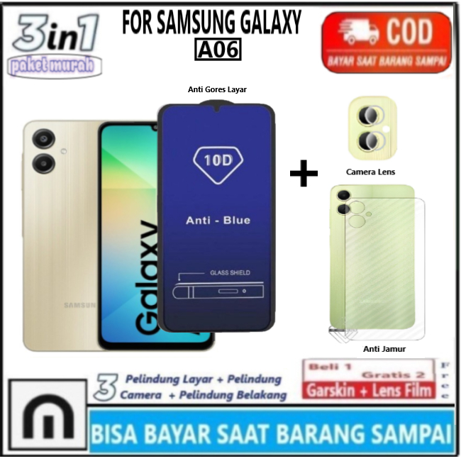 Promo Paket 3in1 Tempered Glass Samsung Galaxy A06 Full Cover Anti Gores Kaca Full Layar Screen Protector Pelindung Laya