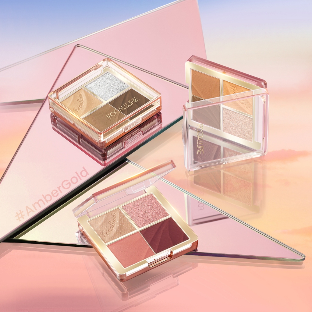 FOCALLURE Multi-Use Shimmer Waterproof Eyeshadow Palette Powder #AmberGold