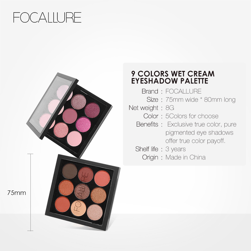 FOCALLURE 9 Warna Eyeshadow Palette Mata Kosmetik