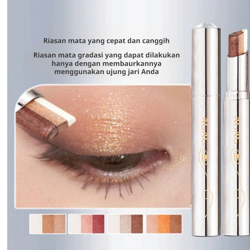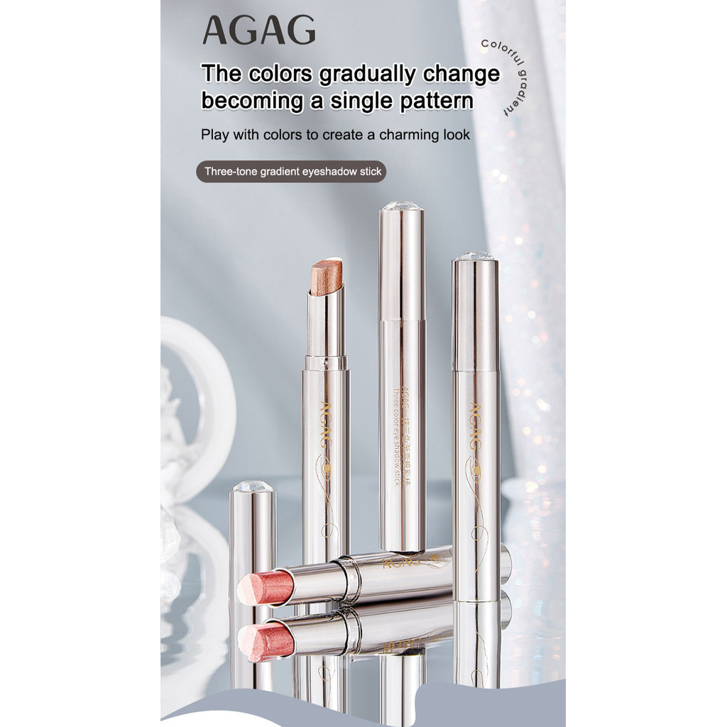 ⭐Kejutan Cantik!⚡Stik Eyeshadow Gradasi Tiga Warna AGAG/3-in-1 Eyeshadow Stick, Glitter, Gradasi/Tahan Air, Berkilau, Ta