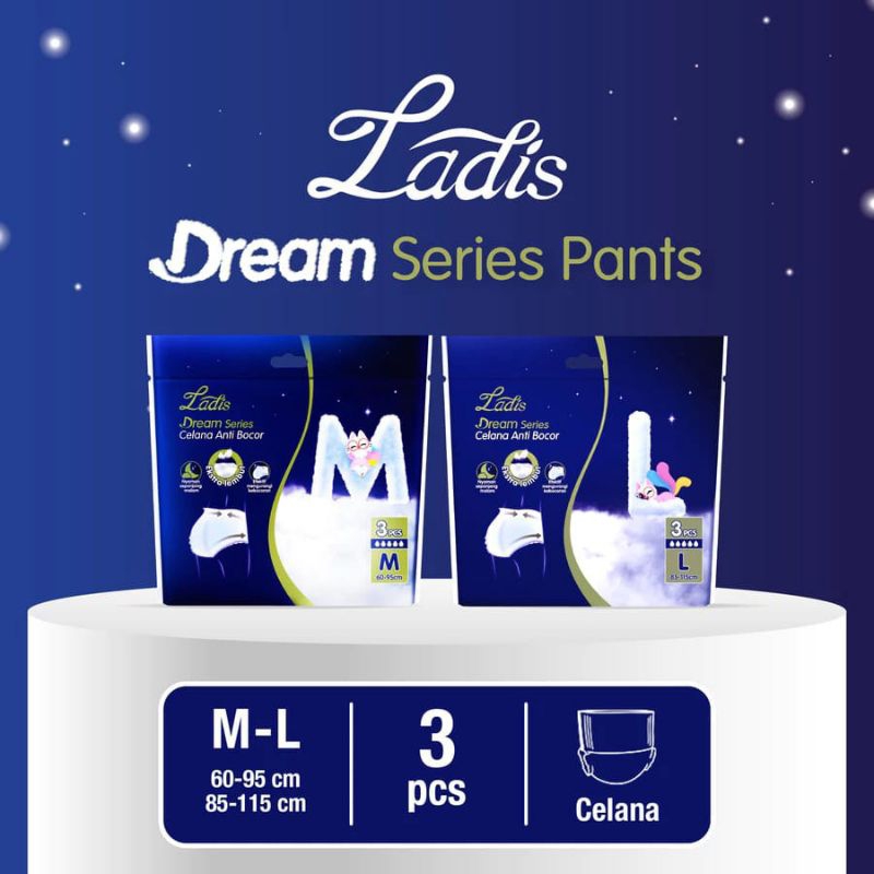 MAKUKU LADIS DREAM SERIES PEMBALUT CELANA MENSTRUASI SIZE M & L ISI 3 PCS - PEMBALUT CELANA WANITA ANTI BOCOR