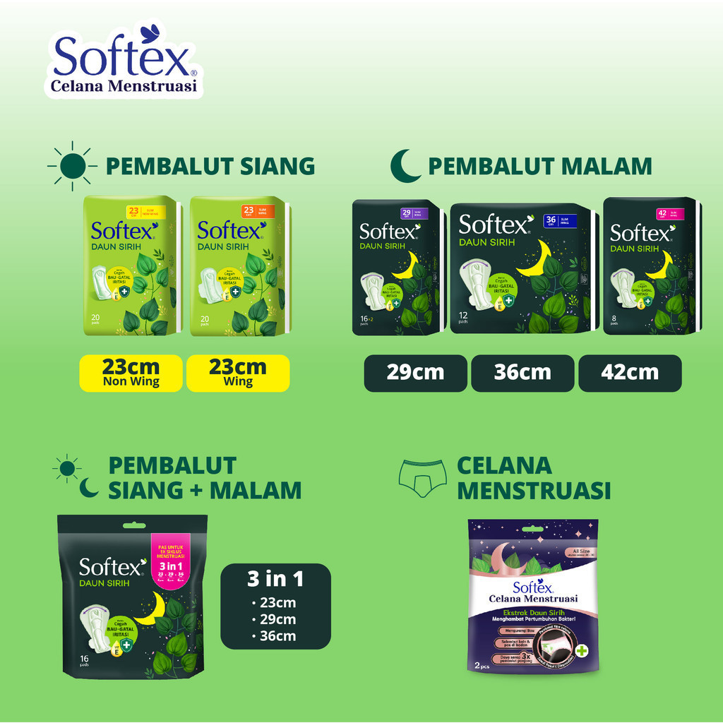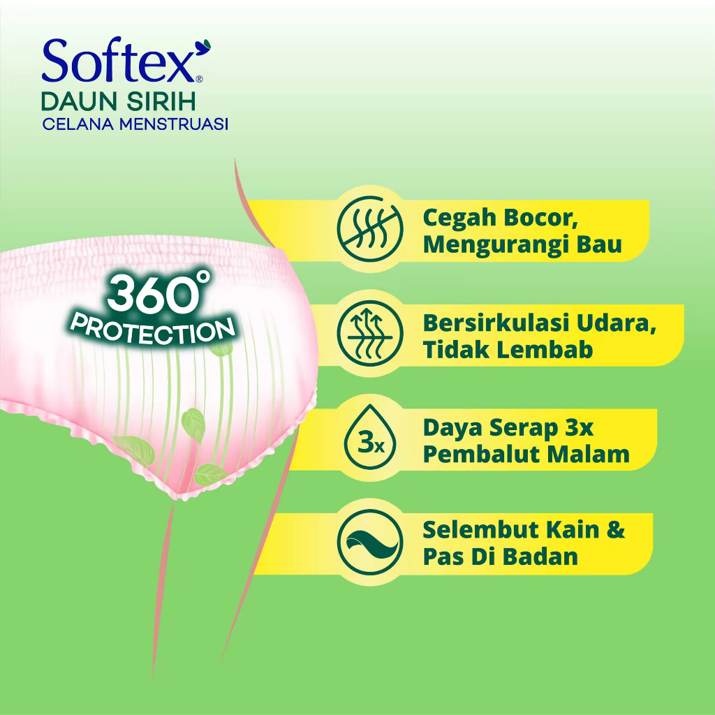 SOFTEX CELANA MENSTRUASI DAUN SIRIH 2S X 2 PACK - PEMBALUT CELANA SIRIH