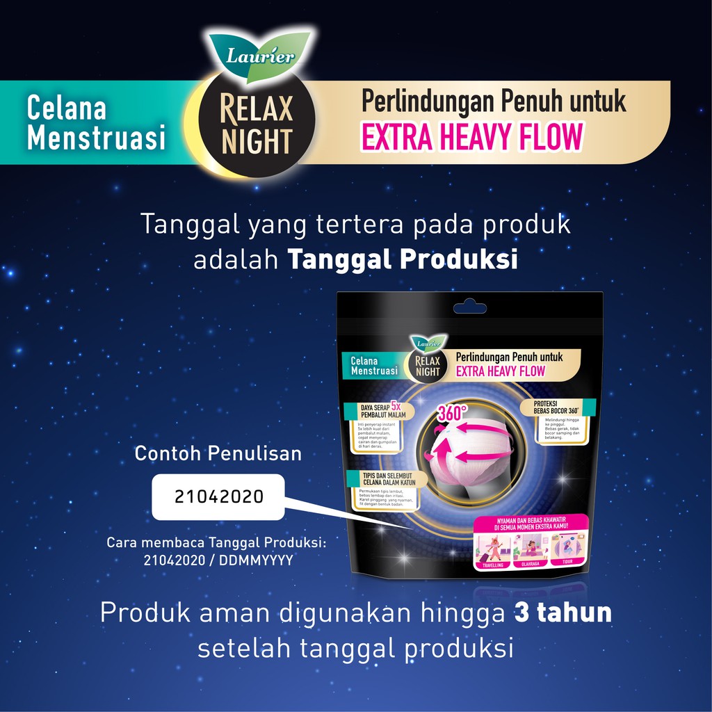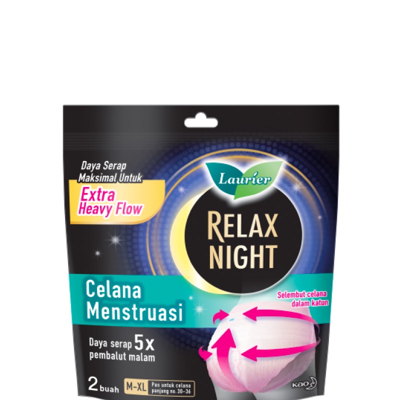 LAURIER RELAX NIGHT PANTS CELANA MENSTRUASI PEMBALUT WANITA BEBAS KHAWATIR DI SEMUA MOMEN EKSTRA SIZE M-XL - DAYA SERAP 5X PEMBALUT MALAM ISI 2 BUAH