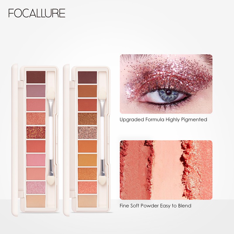 FOCALLURE 10 Warna Glitter Eyeshadow palette - kosmetik Mata