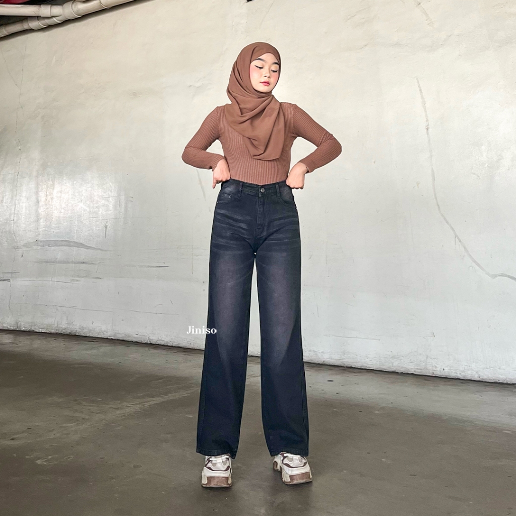 JINISO OFFICIAL STORE - Highwaist Loose Jeans 805 HANGOVER Celana Panjang Kekinian