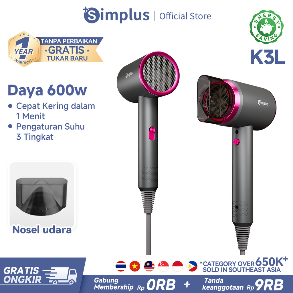 Hair Dryer Rambut Simplus Hair Dryer Low Watt 600w Hot & Cold Pengering Rambut Portable