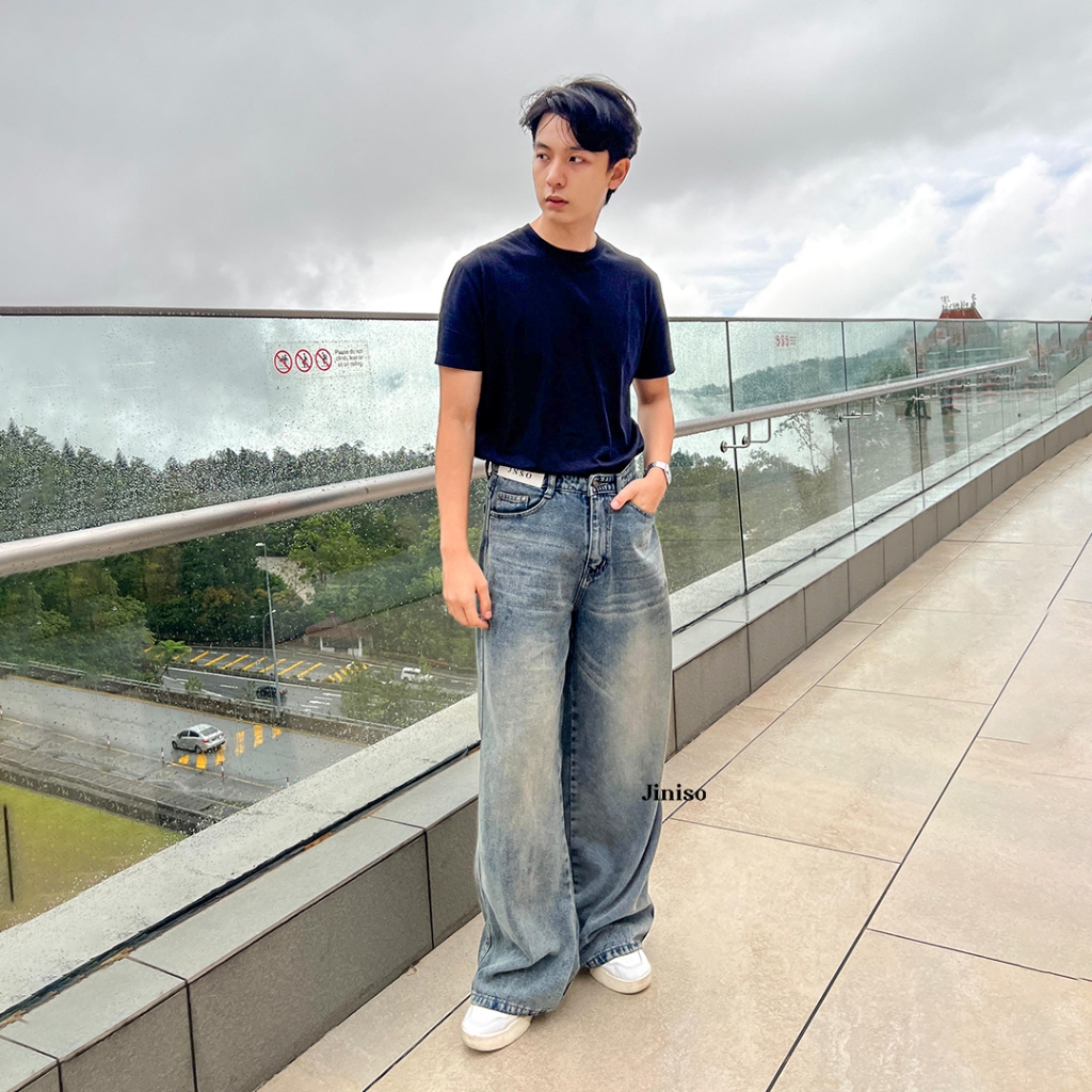 JINISO OFFICIAL STORE - Oversize Baggy Loose Jeans Pria 777 - Celana Panjang Kekinian