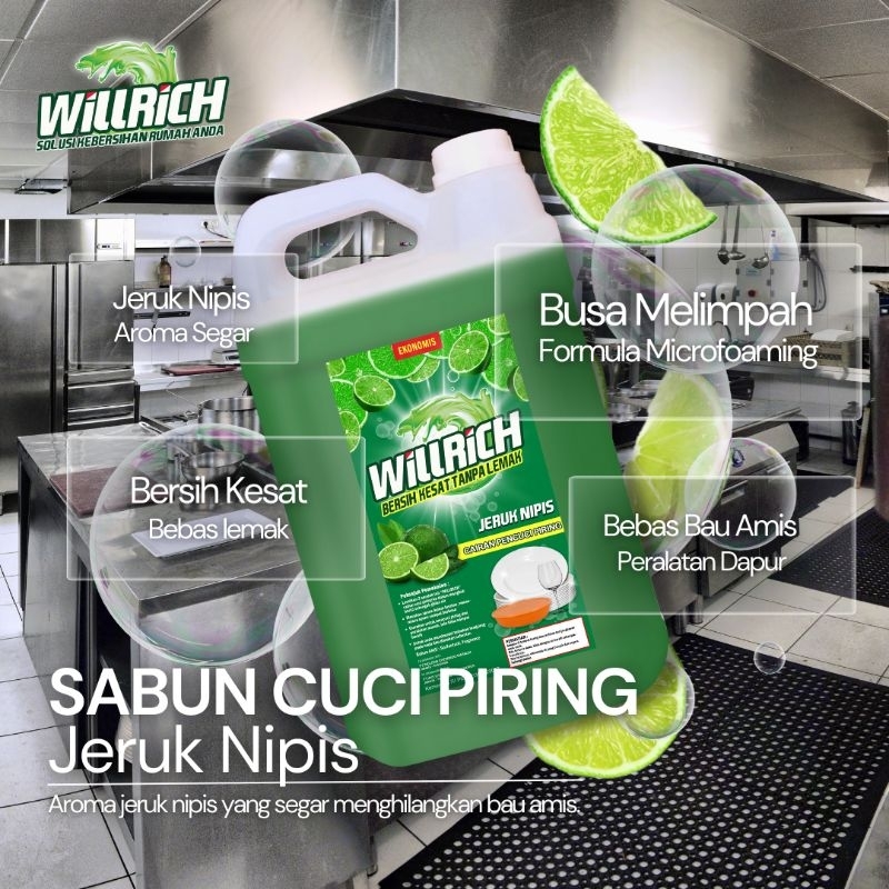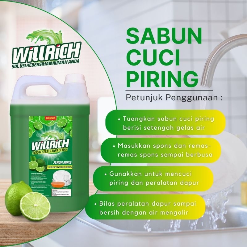Sabun Cuci Piring Willrich Lime Jeruk Nipis Premium 5 Liter Pengiriman Instant