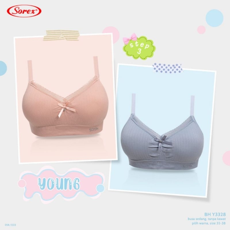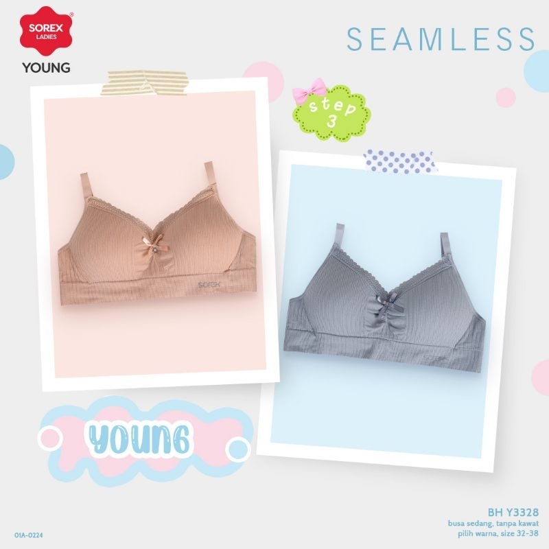 Sorex Young Seamless BH Y 3328 Bra Remaja Step 3 Busa Tanpa Kawat Kait 3 Setara Cup B 3/4 Step 3 Harian