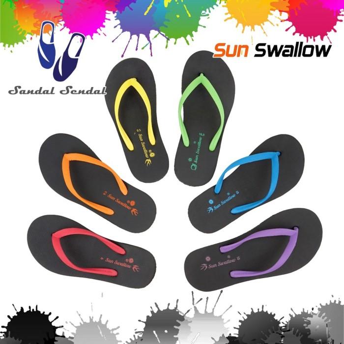 Terlaris Sandal Jepit Wanita Sun Swallow LUMINA Fashion Karet Lokal Lentur Ringan - 10.5 Hitam/Hijau Promo