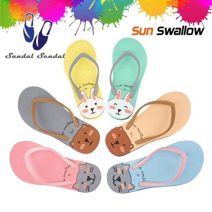 Promo Sandal Jepit Wanita Sun Swallow ANIMAL Fashion Karet Lokal Lentur Ringan - 9.5 Kuning/Abu Promo