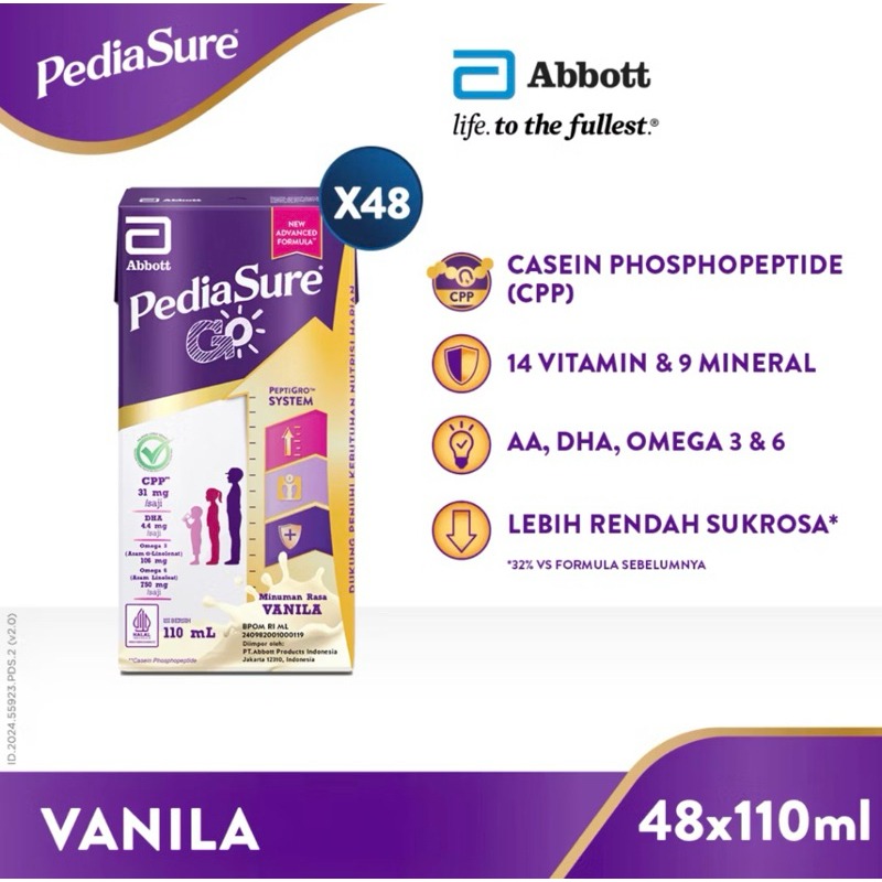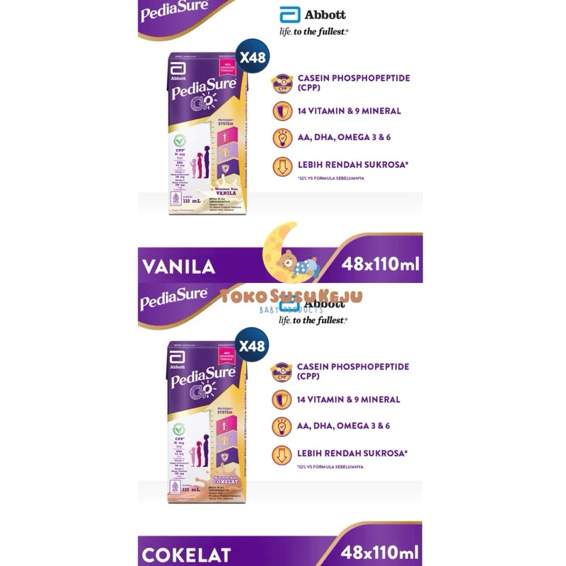 PEDIASURE GO UHT 110ml COKELAT , VANILA 48pcs 1karton