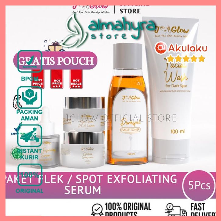 Jglow Paket Flek Whitening 5in1 - Skincare Mengatasi Flek Hitam, Kusam & Cerahkan Wajah | BPOM Resmi
