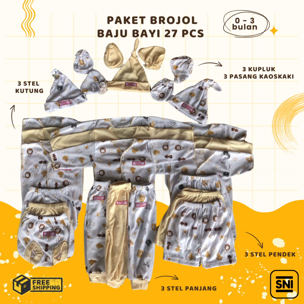 27 Pcs Lengkap Setelan Baju Bayi Baru Lahir Topi Sarung Tangan Kaos Kaki Baby Newborn Katun Tc