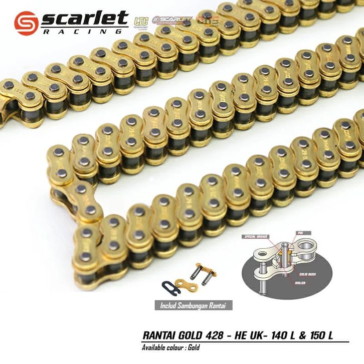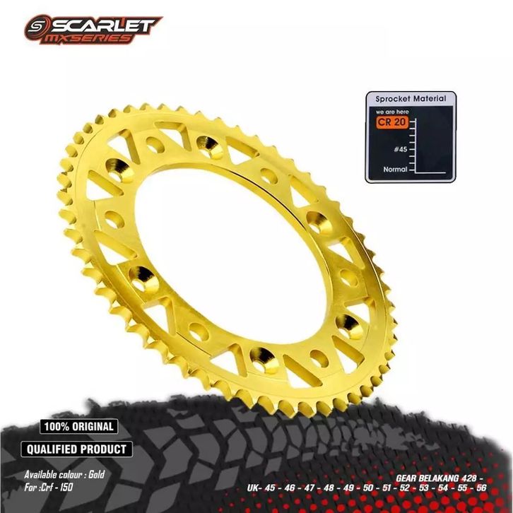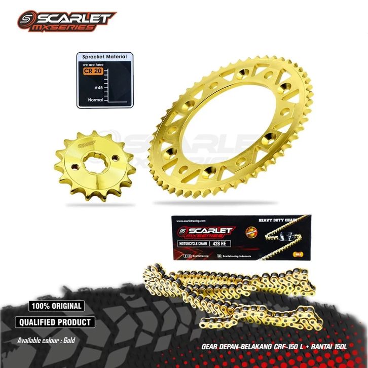 Gir Set Depan Belakang Gold Series CRF 428 Plus Rantai Gold 150L Scarlet Racing