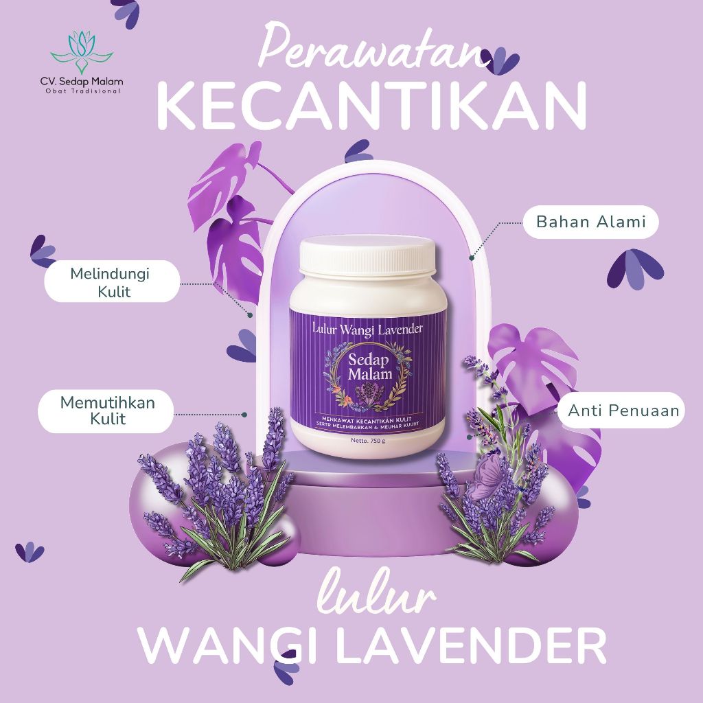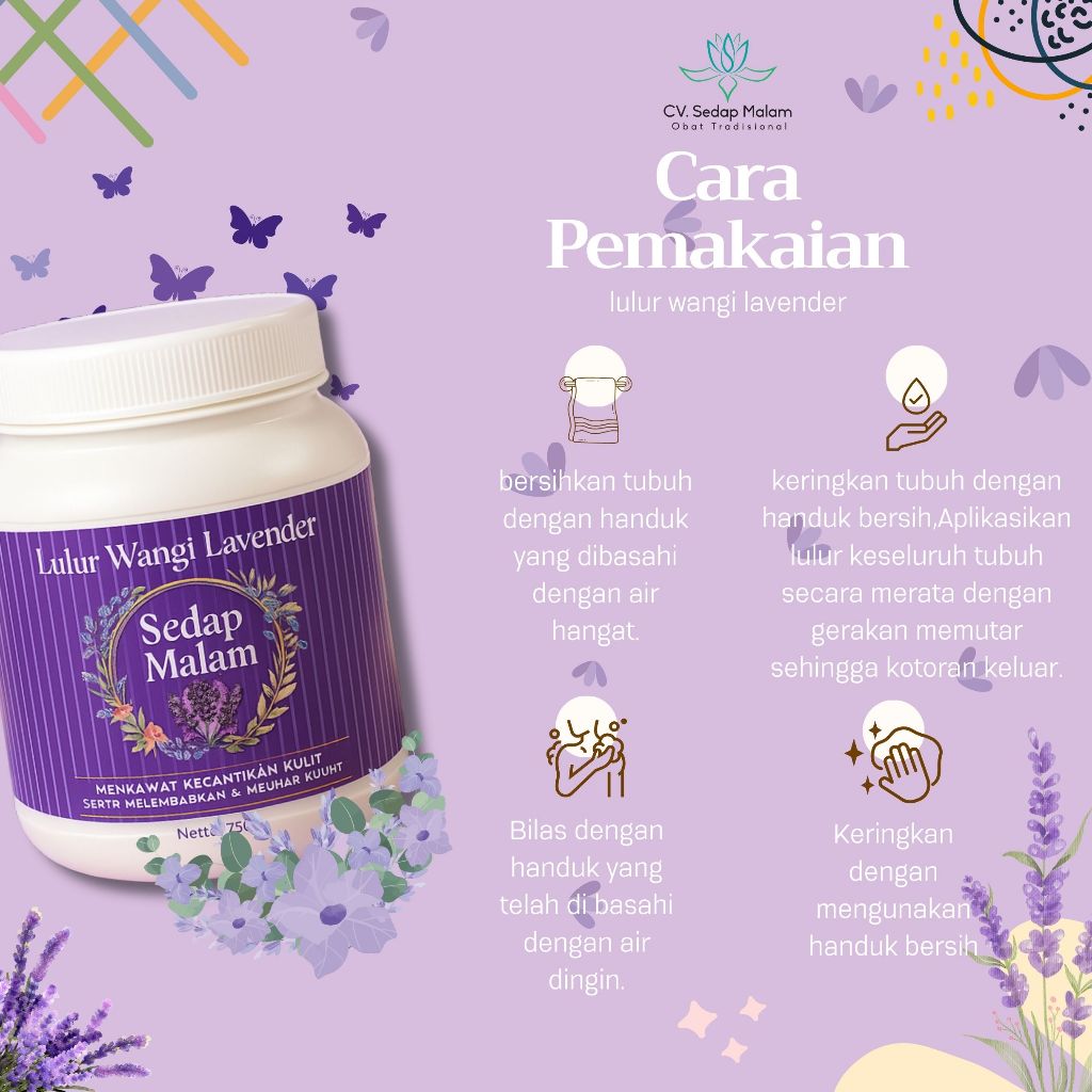 Lulur Rempah Sedap Malam Lavender – 750g | Lembut, Harum & Menenangkan Kulit
