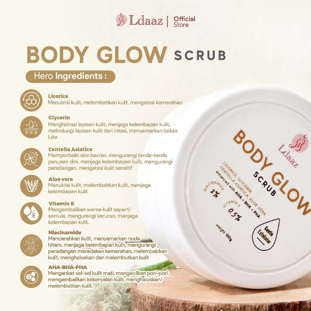 LDAAZ Body Glow Scrub | MEMUDARKAN DARK SPOT | BODY SCRUB PENCERAH | Enhanced with AHA + BHA + PHA