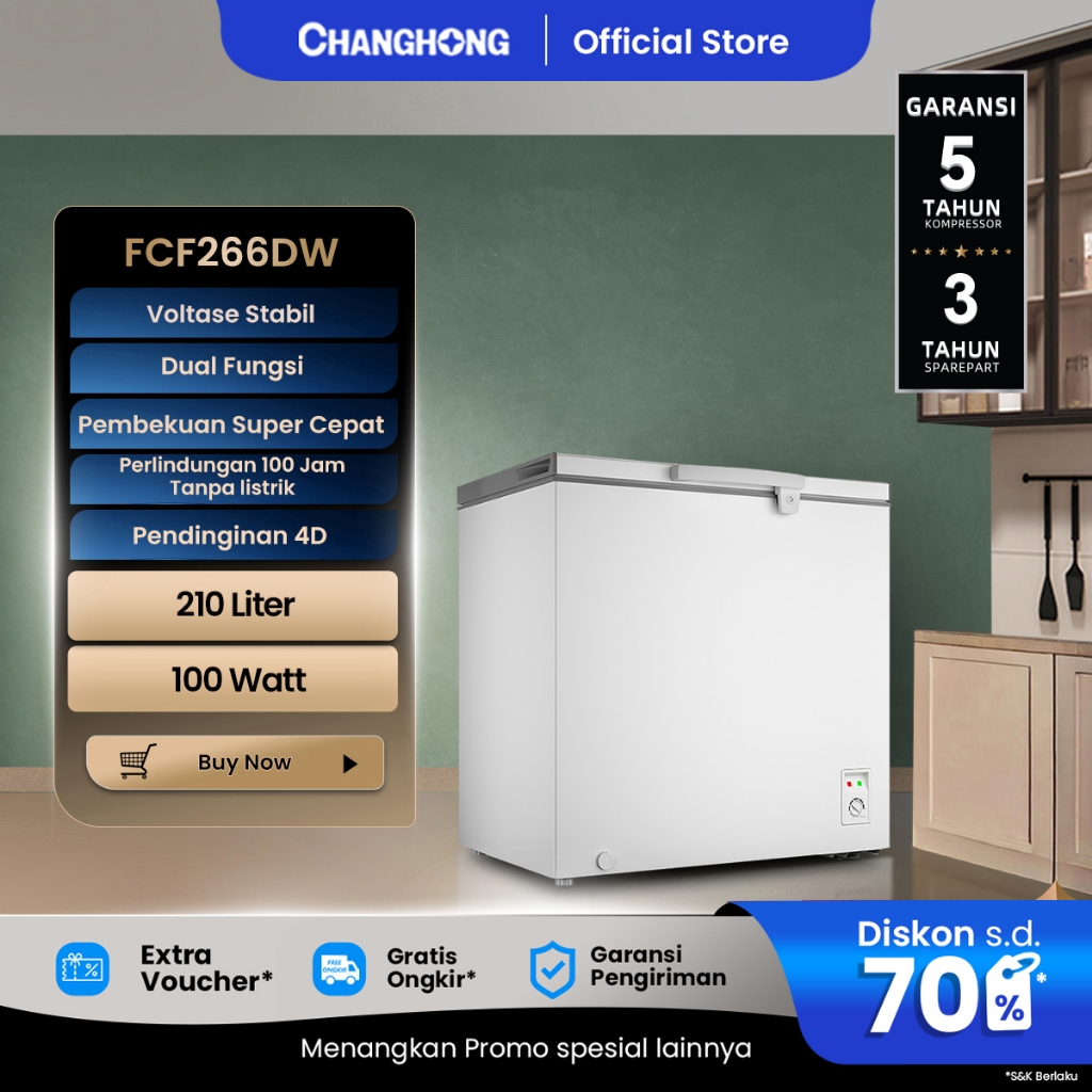 Changhong Chest Freezer FCF266DW Kapasitas 210 Liter (fast freezing) (design look minimalis) ( Big Capacity) (Voltase Ya