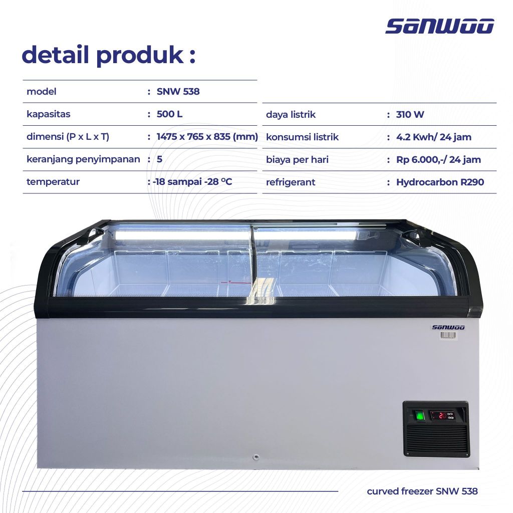 Freezer Sanwoo Sliding Curved Glass SNW 538F/ Freezer Sliding Curved Glass 500L