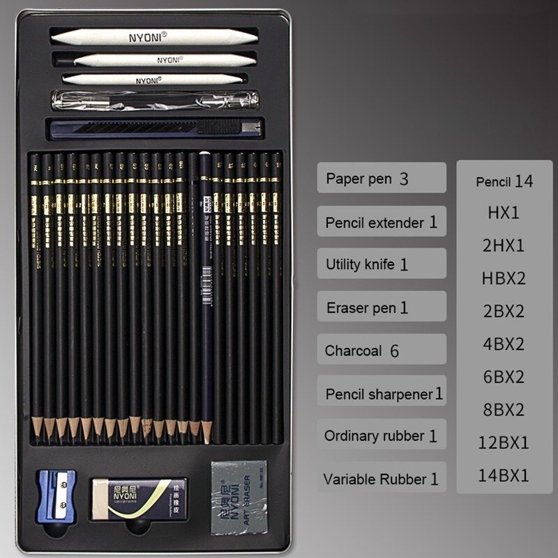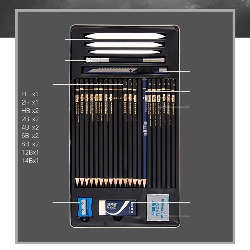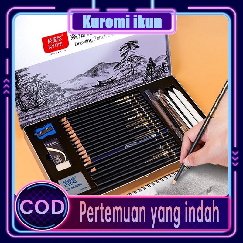 {Rumah Xiaomi} Nyoni Drawing Pencil Gambar Set 29pcs Metal Tin Box Pensil Gambar Lukis Sketsa Lengkap Paket