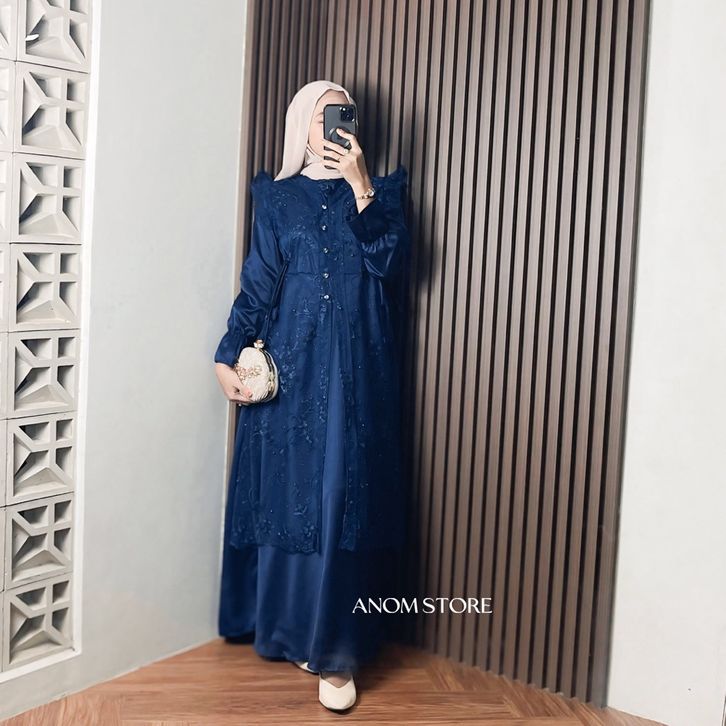 Dress Satin Silk Gamis Brokat Terbaru 2026 Model Terbaru Kekinian Mewah Elegan Gamis Kondangan Bridesmaid Gaun Lebaran