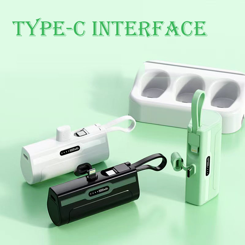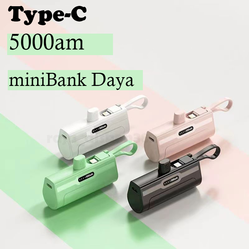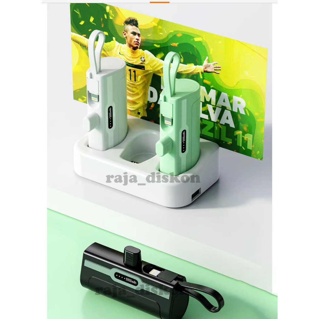 Powerbank mini 5000mah 2-in-1 cable lightning type c with stand holder - powerbank mini
