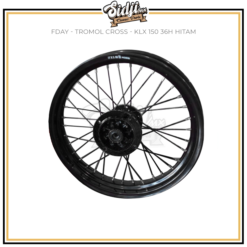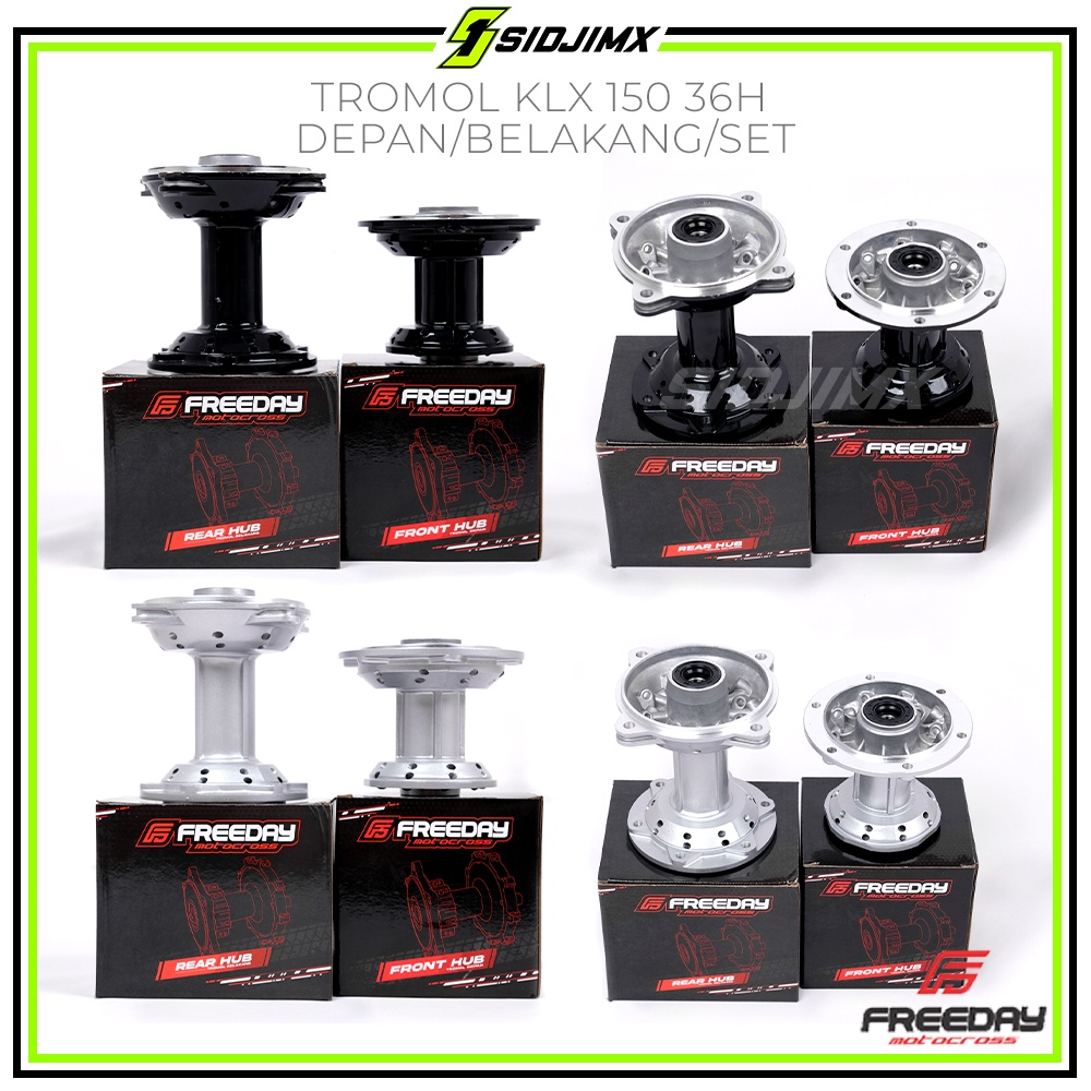 Tromol Depan Belakang SET Depan Plus Belakang Cross FREEDAY KLX 150 36 Hole NON DISC Hitam Silver